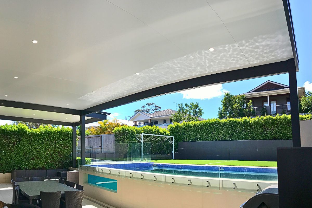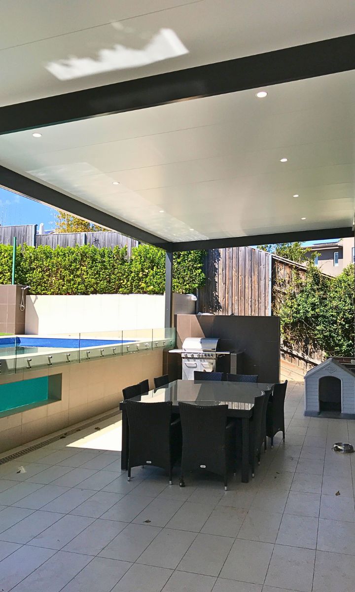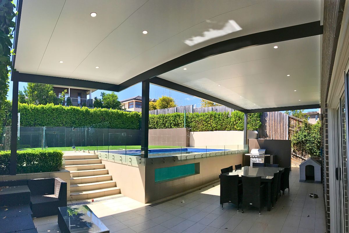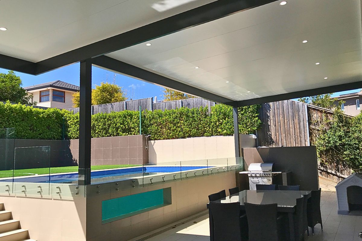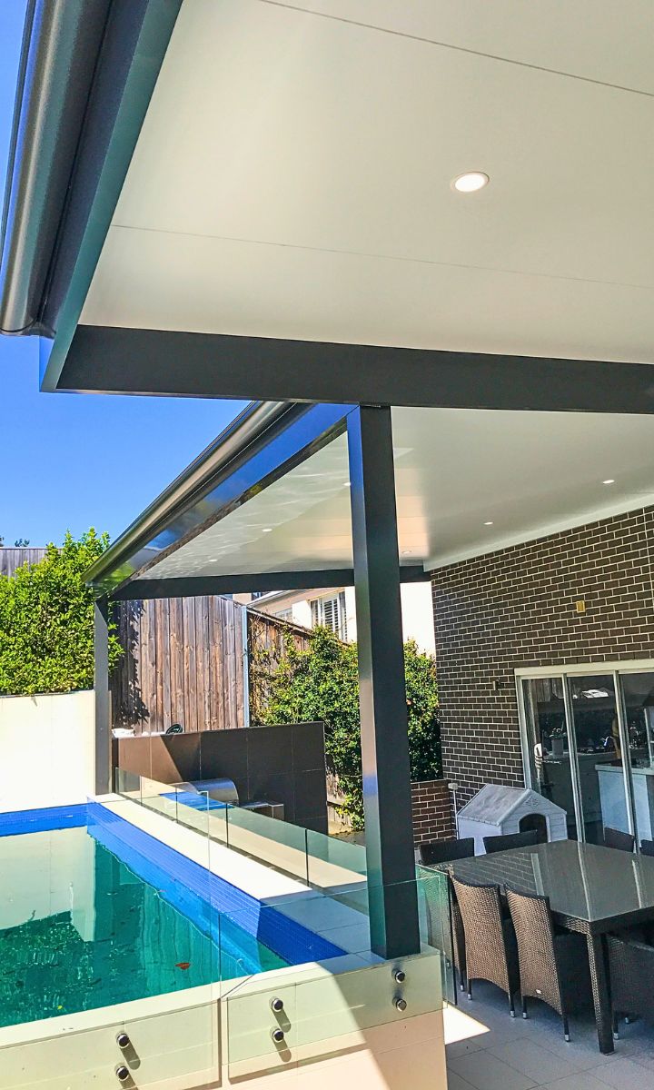 We have used Insulated roofing panels to keep the area cool in summer and warm in winter. Our client can sit back and watch the kids playing in the pool in summer, but still entertain outside in the cooler months.