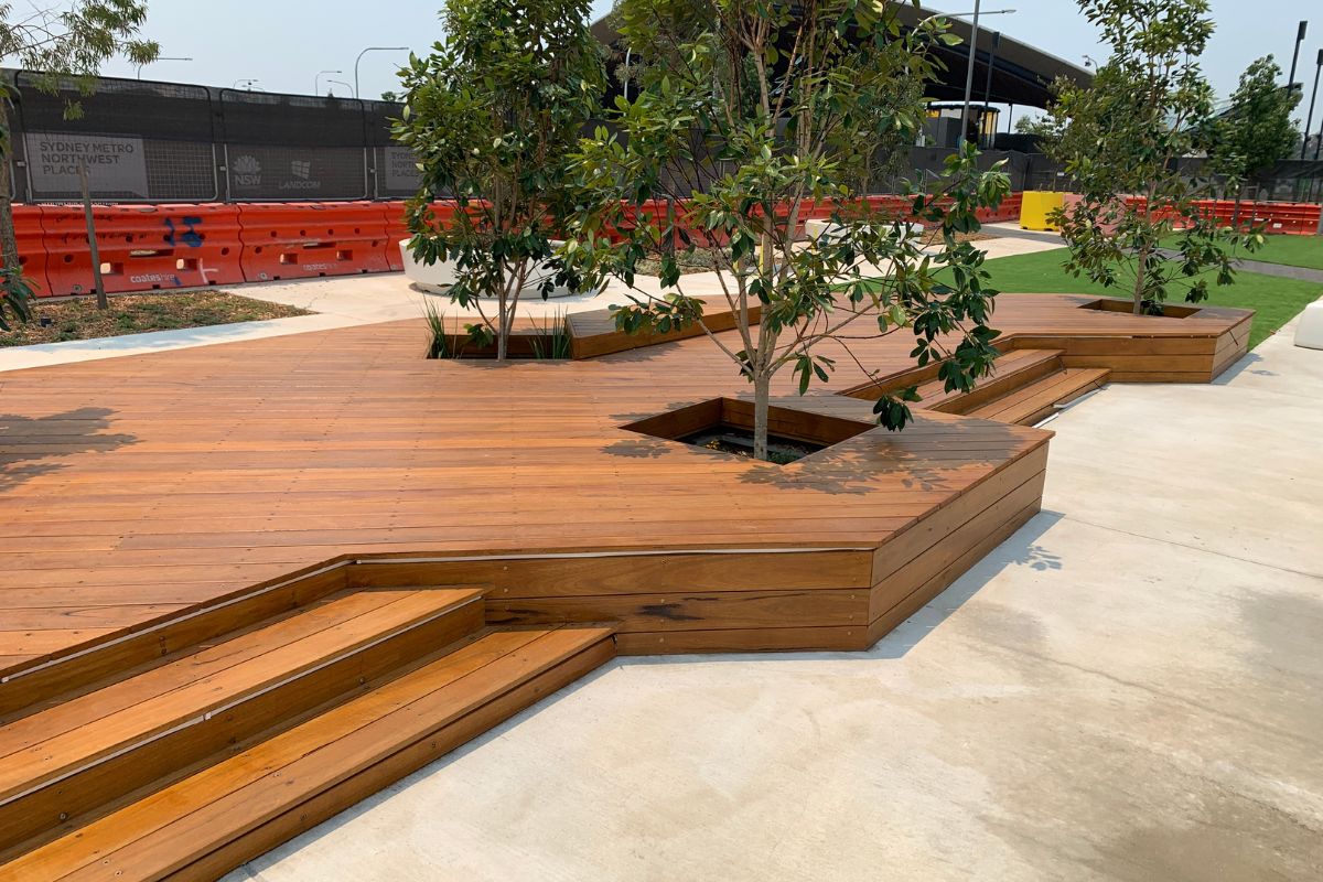 At Bella Vista Metro Station, a landmark hub in Sydney’s north-west, commuters are welcomed by striking architecture and thoughtfully designed public spaces. As part of the station’s development, Pergola Land was engaged to deliver a decking project that not only added functionality but also complemented the station’s sleek and modern aesthetic.