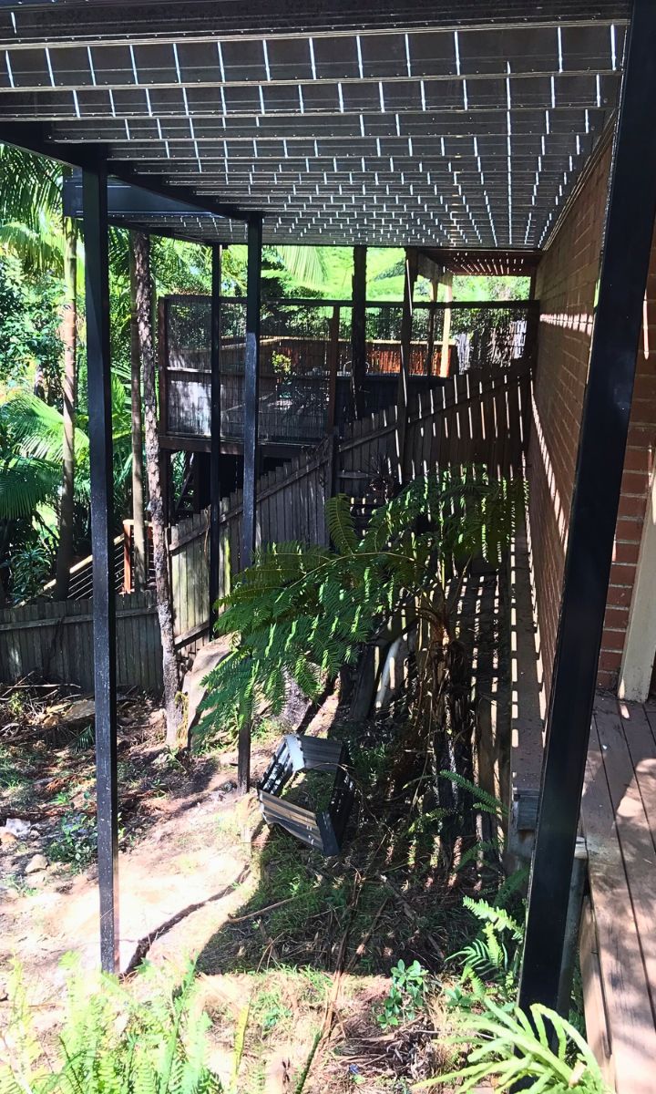 A brilliant steel-framed hardwood deck created by the Pergola Land team.