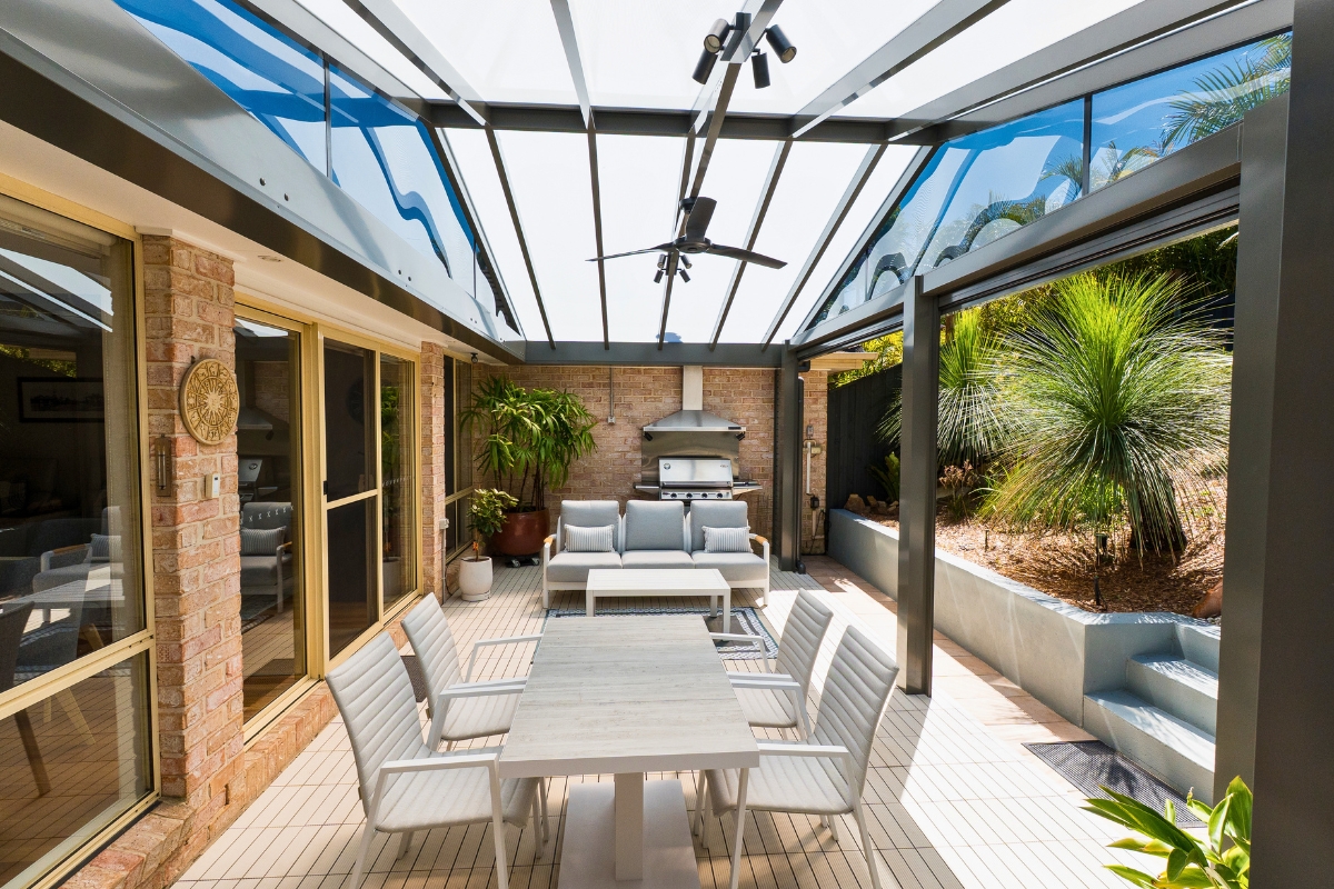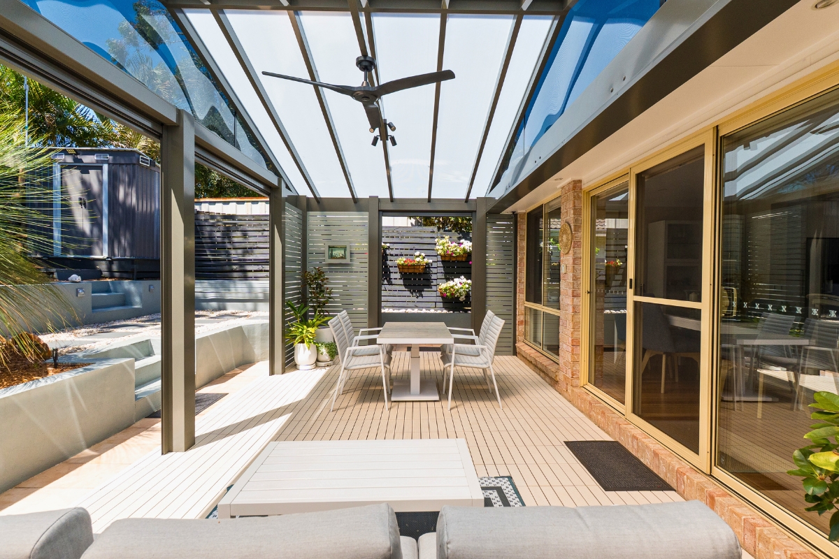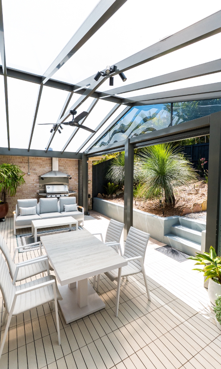 This stunning Mona Vale patio was designed to bring the relaxed, resort-style feel of the Northern Beaches into everyday outdoor living. Bright, open and beautifully protected, the space now feels like a private sanctuary — perfect for entertaining, relaxing with family, or enjoying a quiet moment outdoors.