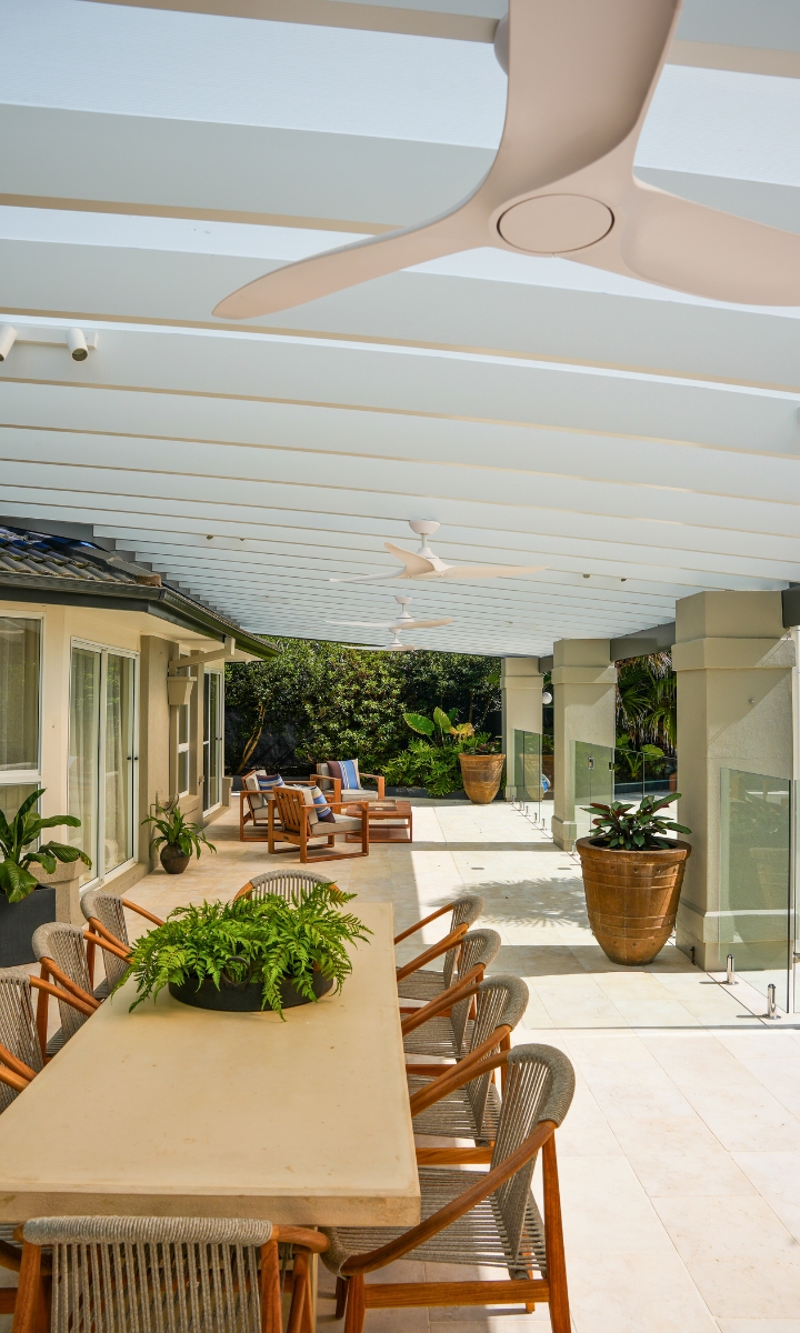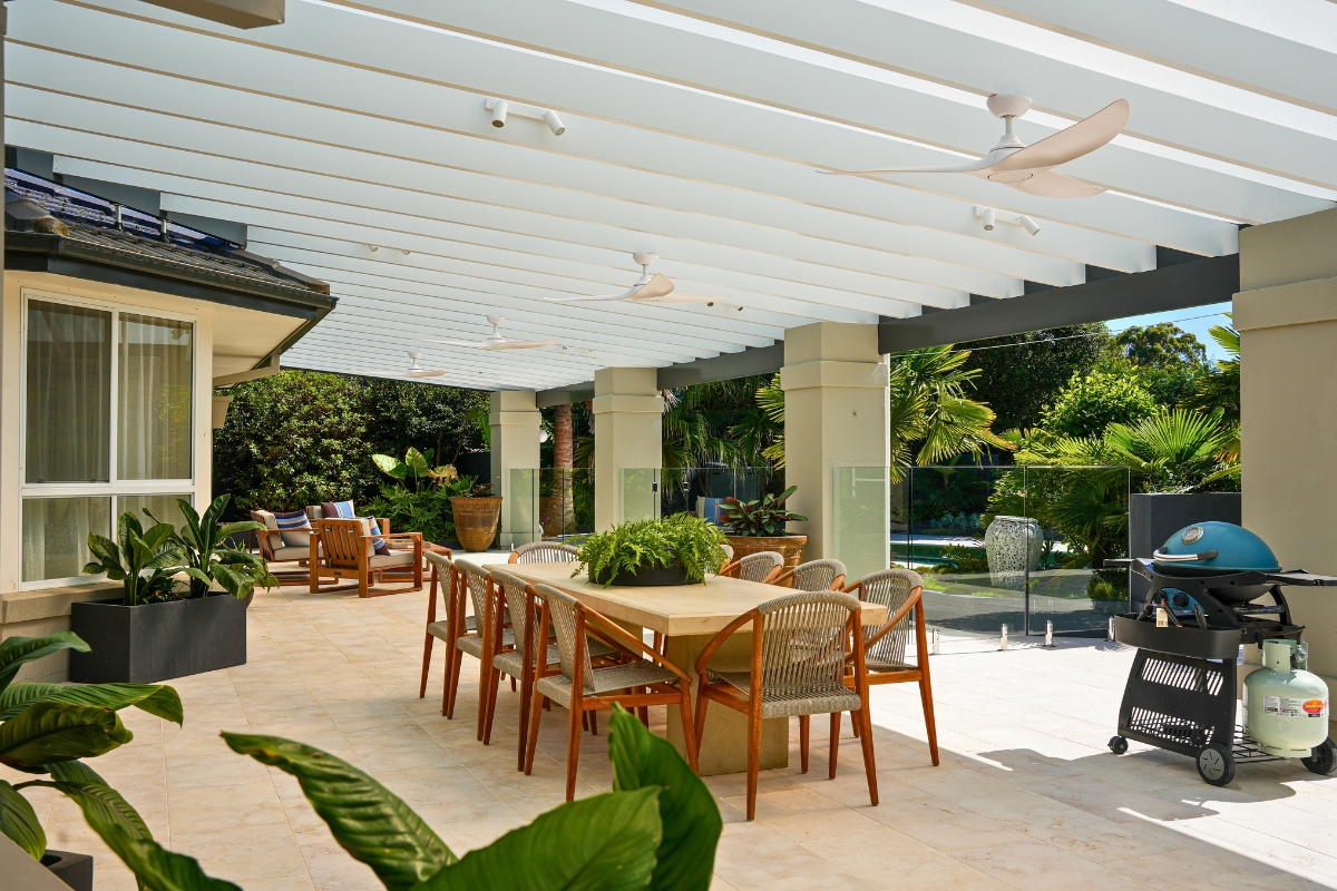 Designed to follow the unique angles of the home’s roofline, this structure provides a vast, weather-protected footprint without sacrificing the beautiful natural light of the Northern Beaches.